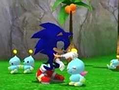 吹奏后出现平台 跳过后上升 看见上方的另一扇门 没锁可以直接进去 进去后看见两只Chaos0型机器人 其中有一只带爆点 千万别打他们 直接走过去 不然全部舱口都会打开 不小心就被吸进去了 走过去后站在铁笼子上跳跃飞到浮空平台 看准时机 跳跃从对面的红色激光上部飞进去...之后开门找到Chao(真麻烦的东西)