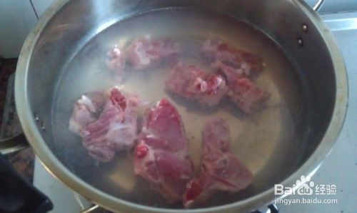 准备新鲜猪骨头和白萝卜,把骨头放入锅内,随着水温的升高,骨头里的血污都慢慢地出来了