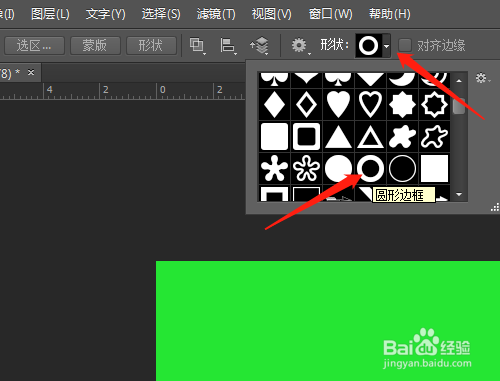 单击自定形状工具,在选项中找到同心圆,选路径。