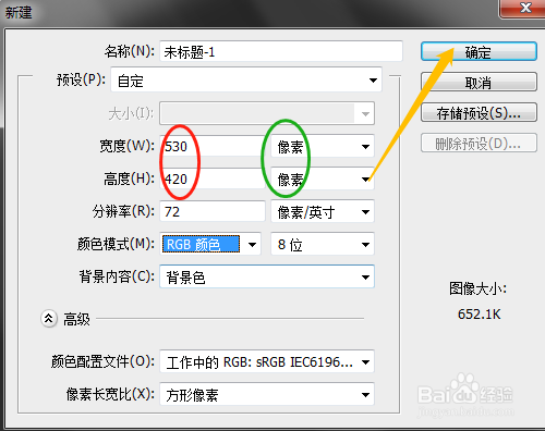 用文件菜单→新建…对话框如图所示设置,确定后新建空白文件。