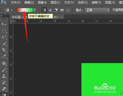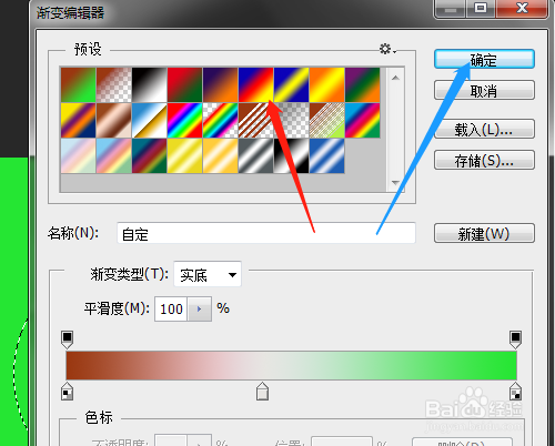 单击用渐变工具,选项中选编辑渐变,对话框中选项渐变类型,确定。