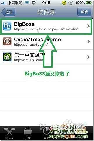cydia会加载一段时间,和我们添加源的时候是一样的,等加载结束再到管理——软件源中看下是不是恢复了呢
