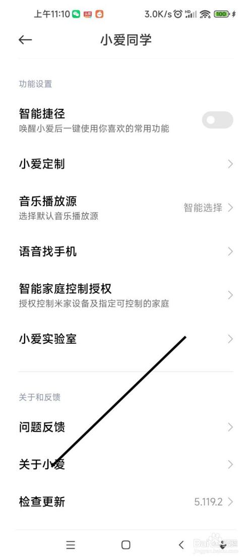 上滑屏幕找到并点击关于小爱同学