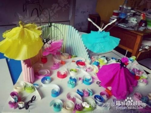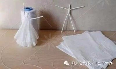 如果觉得白色太单调,可以先把餐巾纸染色后,再做成衣服给芭蕾舞演员们穿上。