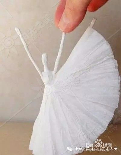 最后当然是给芭蕾舞者穿上餐巾纸衣服啦!详见下图:将纸巾对折,形成裙子的轮廓。