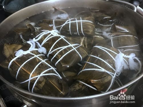 锅里烧开水,下粽子煮3小时,中途要将面上的粽子和下面的粽子换一下位置。用筷子挑出把面上的和下面的换一下位置。锅小没办法 。