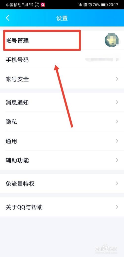 进入设置页面后,继续点击进入账号管理功能;