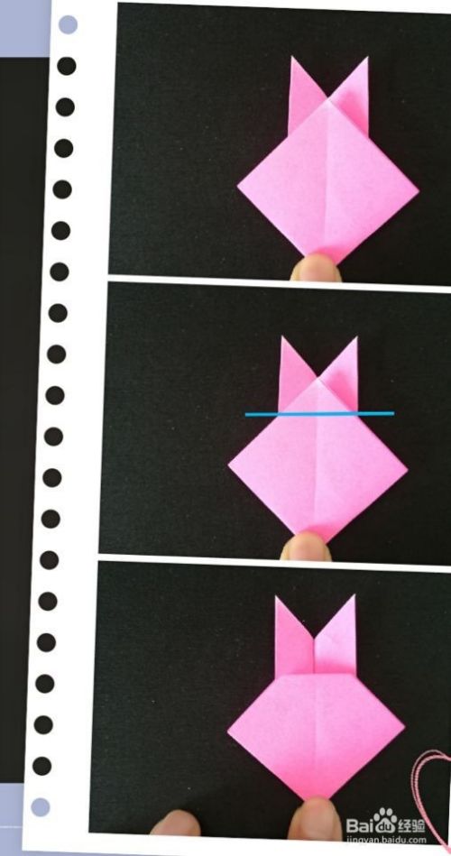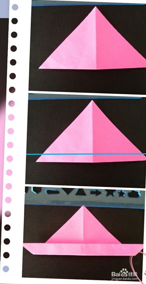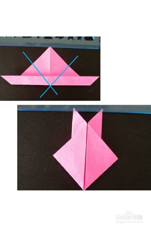 1 准备一张正方形彩纸,沿对角线折叠成一个大三角形,再次沿中线对折成一 个小三角形