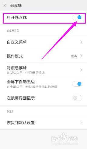 点击【打开悬浮球】。在未开启的情况下,页面内悬浮球的其他设置都是灰色的。只有开启后,下面的其他设置才可以操作。