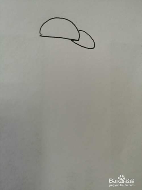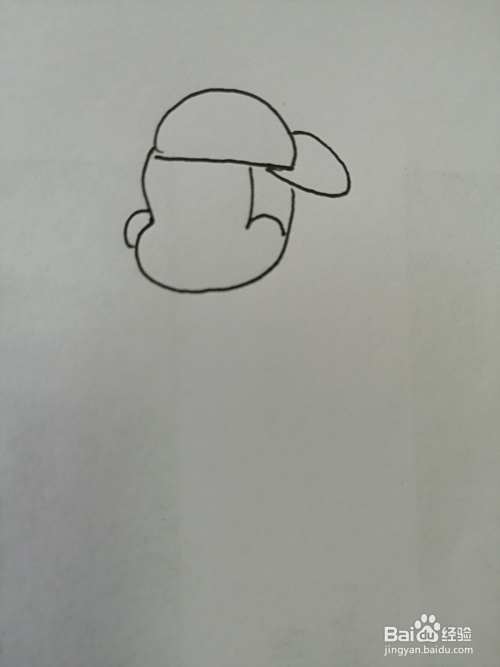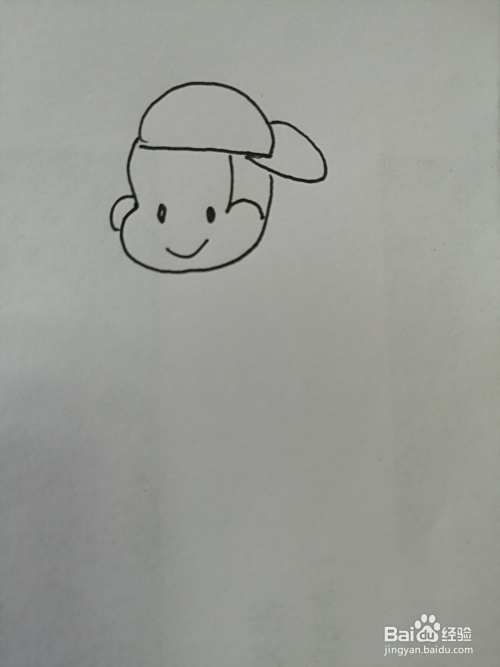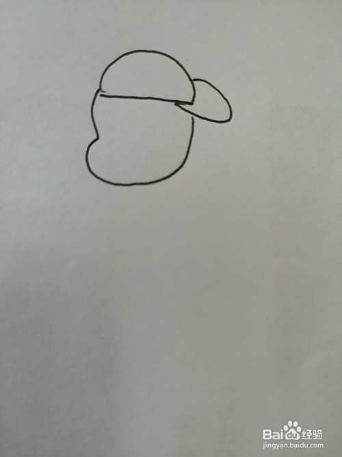 第一步,我们先画出帅气的小男孩的帽子,在帽子下面画出小男孩椭圆形的头。