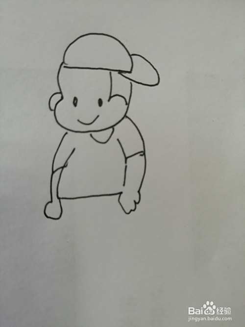 第四步,接着继续画出帅气的小男孩的衣服,注意两只手臂的画法。