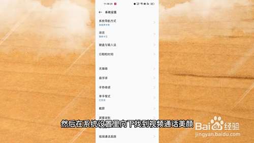 然后在系统设置里向下找到视频通话美颜,接着点击进去。