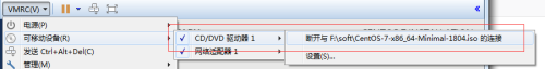 在VMRC下开始挂载本地镜像,并确认挂载成功