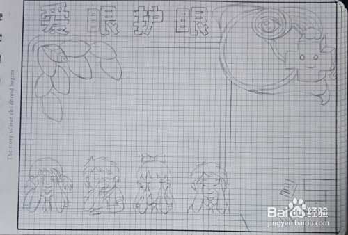 首先用铅笔在纸上勾画出整个手抄报的构图。