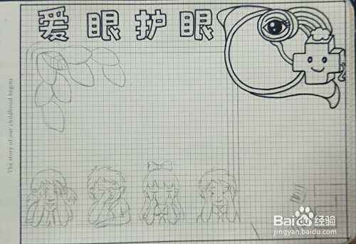 在铅笔稿的基础上先勾画出手抄报的主题。