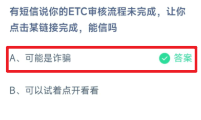 支付宝蚂蚁庄园3月14日问题:有短信说你的ETC审核流程未完成让你点击某链接完成能信吗
