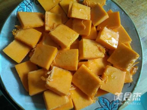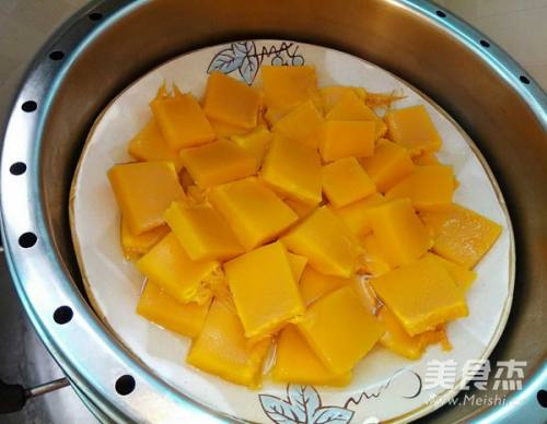 将盛有南瓜的盘子放在蒸锅中,大火蒸15分钟。