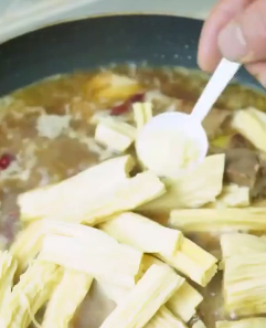 把准备好的牛肉清洗干净切成块儿,腐竹温水泡软,牛肉冷水下锅,下葱姜料酒煮好捞出清洗干净