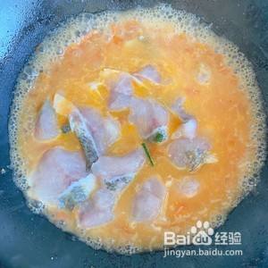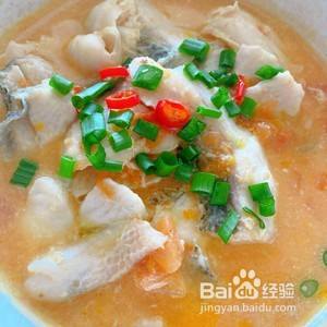 加水漫过鱼骨、炒好的西红柿、调味料,煮10分钟,捞出鱼骨装盘,接着放入鱼肉,轻轻滑动,煮30秒倒出。