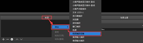 启动OBS,主界面的【来源】中右键点【添加】,添加【视频捕获设备】。