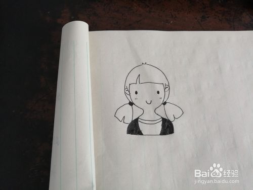 我们再给女孩画上扎着的两条小辫,如图。