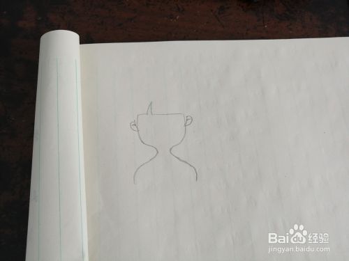 我们在脸型的两侧画上两只耳朵,半圆形的。