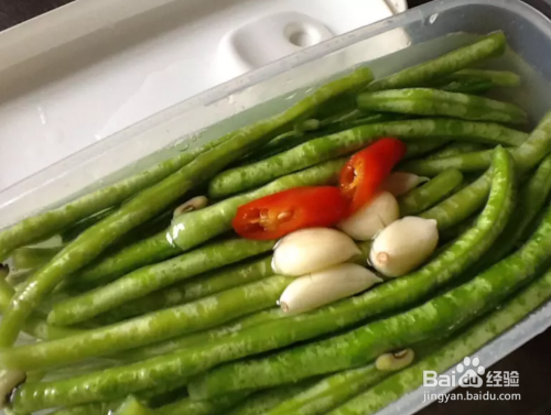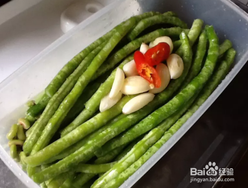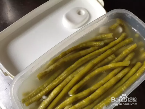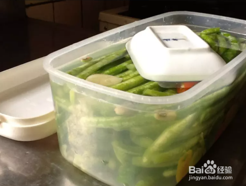 用一个碗或碟子压在长豆上,不可让它浮出水面。