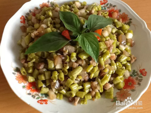 2.先将蒜头辣椒爆香,加入绞肉(可先腌:盐、糖、 米酒太白粉少许),炒至8分熟,加入腌好的酸豇豆再拌炒至肉熟即可。