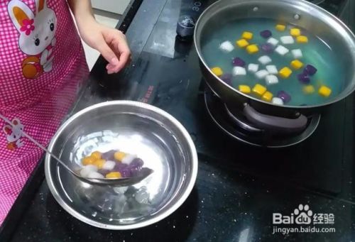 如果不知道熟没熟,就捞出一小块用筷子戳一下,容易穿透就是熟了。煮好的芋圆捞起过一下冰开水,这样会使芋圆会更Q弹哦。