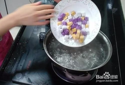 芋圆全部做好就可以准备下锅煮了。先把水煮开然后再倒入芋圆,煮到芋圆浮起后,再煮个两分钟就差不多了。