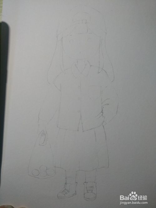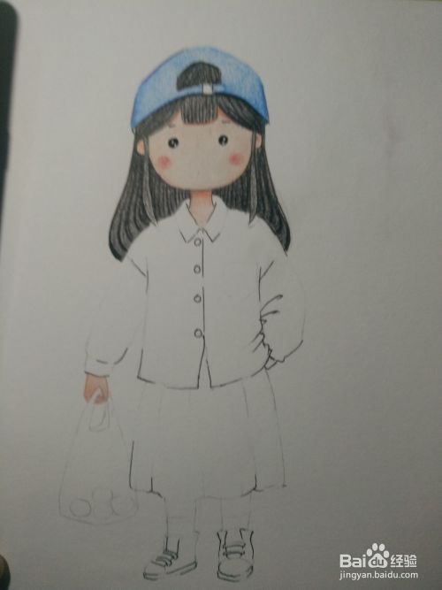 最后刻画小女孩的腿脚和手里面拿着的塑料袋。