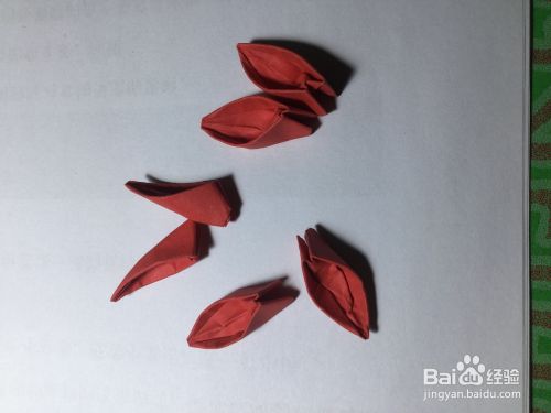 将6个或者多个花瓣依次粘好,粘成一朵花,花瓣的折纸就完成了。