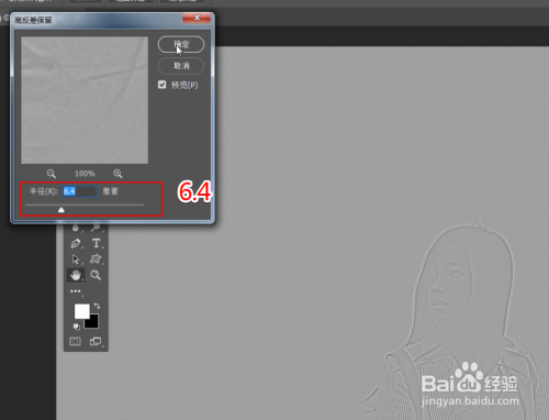 在弹出的“高反差保留”窗口,将“半径”属性设为6.4像素。