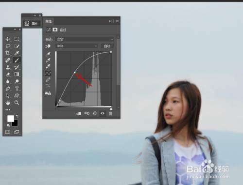 将曲线的点向上拖拽,使画面人像皮肤更加亮丽透彻。