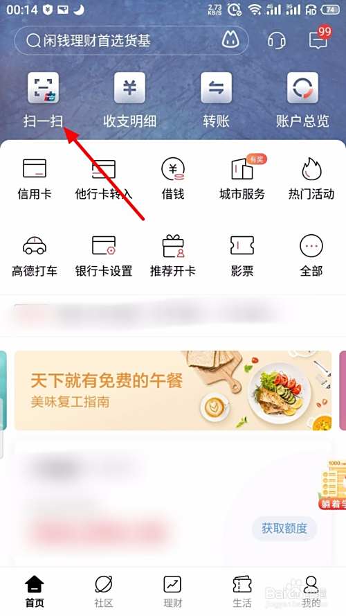 【1】打开 招商银行,进入后,点击 扫一扫>收款码;