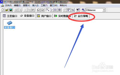 打开昆仑通泰触摸屏编程软件,在菜单栏中选择【运行策略】并点击打开。