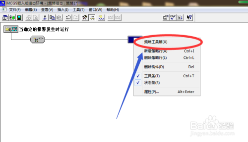 在创建的新增策略行中,点击鼠标右键选择【策略工具箱】