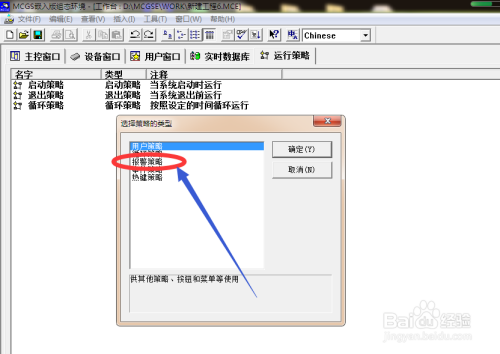 在弹出的选择策略的类型窗口中选择【报警策略】