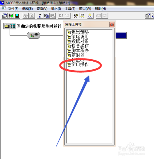 在策略工具箱窗口中选择【窗口操作】