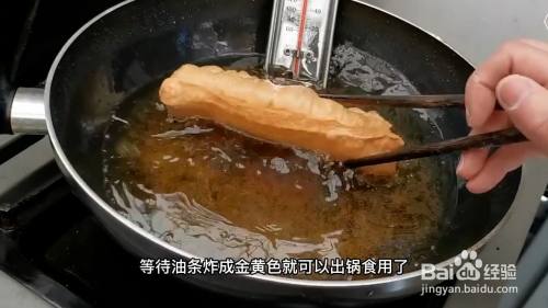 用筷子不停的翻面使其受热均匀,这样面团就会膨胀,等待油条炸成金黄色就可以出锅食用了,这就是制作油条的方法。