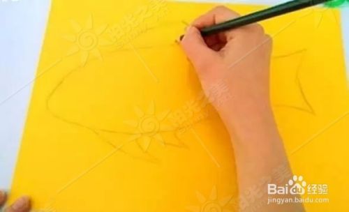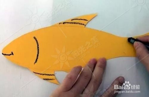 准备好你所需要的材料。用铅笔画出小鱼的轮廓并用剪刀剪下来。