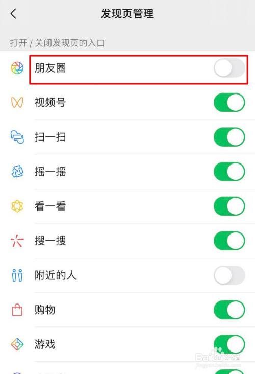 点击朋友圈栏右侧的开关按钮,即可关闭: