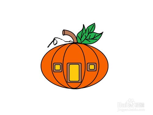最后涂上漂亮的颜色,这样南瓜屋就画好了。