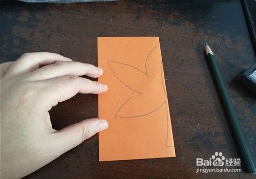 然后我们在折好的彩纸上画上红叶的大体形状,如图所示。