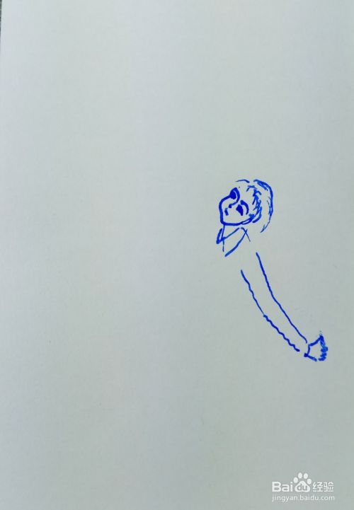 在白纸上用线条和曲线画出一个女人的头部轮廓,并画出她的眼睛,鼻子,嘴巴,头发,然后再用线条画出她左边的胳膊。