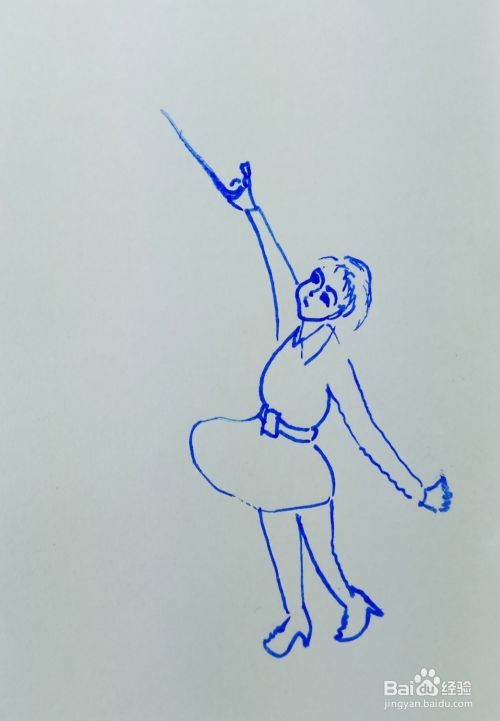 然后再用线条和曲线画出她身上穿着的漂亮裙子。