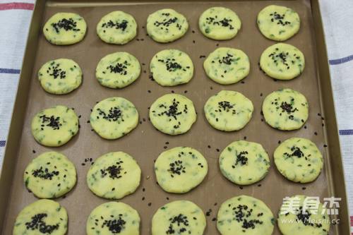 10然后将面揉成团(12克一个,大小自己决定),按扁,撒芝麻。