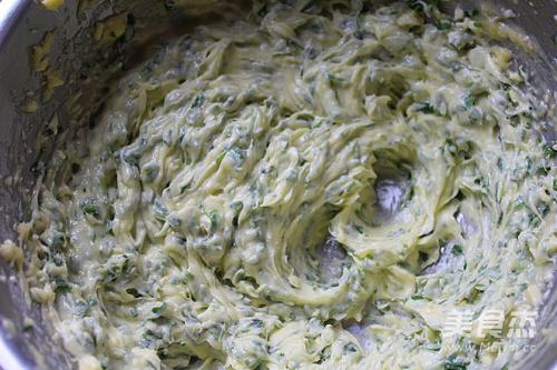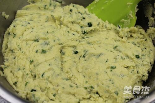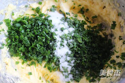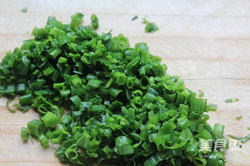 2香葱切碎,只要葱绿部分,一定要控水,葱干点饼干酥脆,最好是洗净控水一夜再切。
