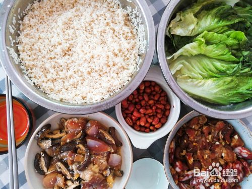 在馅料腌制的时候,我们可以去炸花生,花生也可以用炒的,我懒,不想剥花生衣了,直接就炸好放一边晾凉,待用。然后摘生菜叶子去洗,然后烧水稍微汆烫一下,使菜叶变软(防止发黑,需要过冷河)。只要大片的菜叶,太小用不上的菜芯就留出来,可以炒着吃,白灼也行。其他物料都准备好,在等泡糯米的时间,可以稍微休息一下,喝喝茶,吃个饼什么的。如果糯米泡好了(用手可以轻松捻开)用筛子捞起来,放点盐,油,生抽拌一下,可以入味,米有油分附着还不会那么快变干。