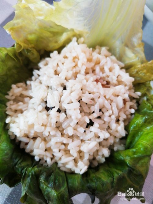 最后再舀一勺米填满,菜梗位置先包,再到两边叶翼收回,然后才是叶片位置包回来收口。